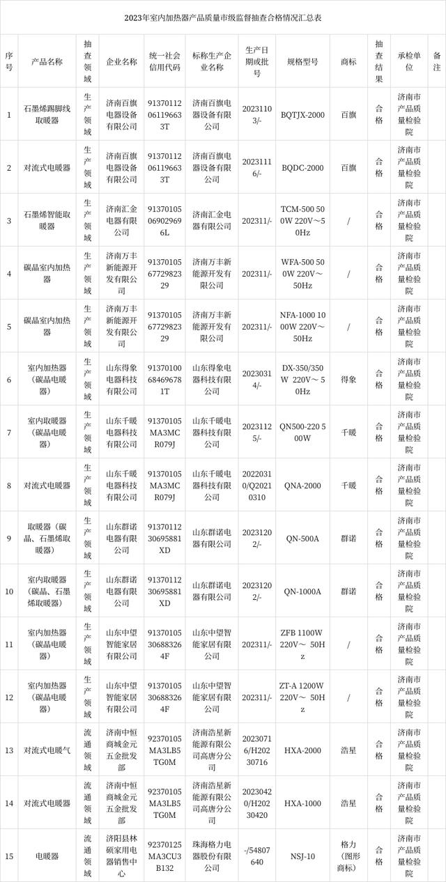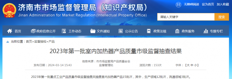 【濟(jì)南】2023年第一批室內(nèi)加熱器產(chǎn)品質(zhì)量市級(jí)監(jiān)督抽查結(jié)果