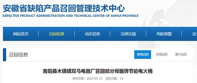 日前,青陽縣木鎮(zhèn)鎮(zhèn)雙馬電器廠按照《消費品召回管理暫行規(guī)定》的要求,向池州市市場監(jiān)管局、安徽省市場監(jiān)督管理局報告了召回計劃,將自即日起,召回2023年9月生產(chǎn)的舜暖牌400W型節(jié)能電火桶,涉及數(shù)量為50件。