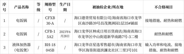 2023年海口市流通領(lǐng)域(線上)電飯煲產(chǎn)品質(zhì)量監(jiān)督抽查結(jié)果