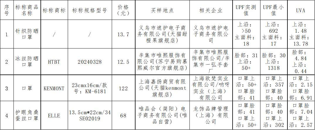 夏日炎炎,做好防曬至關(guān)重要,佩戴防曬又舒適的防曬口罩(面罩)成為很多消費(fèi)者的首選。目前市場(chǎng)上涌現(xiàn)出眾多品牌和款式的防曬口罩及面罩,其功能、價(jià)格等方面存在較大差異,7月9日,上海市消費(fèi)者權(quán)益保護(hù)委員會(huì)發(fā)布防曬口罩(面罩)比較試驗(yàn)結(jié)果:KENMONT、HTBT等4款樣品防曬性能不符合標(biāo)準(zhǔn)要求;KENMONT、ELLE等3款樣品實(shí)測(cè)UPF值與明示或宣稱不符。