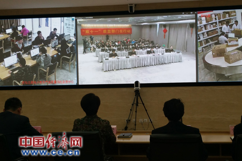 國(guó)家質(zhì)檢總局與設(shè)在杭州的質(zhì)檢總局電子商務(wù)產(chǎn)品質(zhì)量風(fēng)險(xiǎn)監(jiān)測(cè)中心(杭州)進(jìn)行了視頻連線,全過(guò)程監(jiān)管。中國(guó)經(jīng)濟(jì)網(wǎng)記者蘇蘭/攝