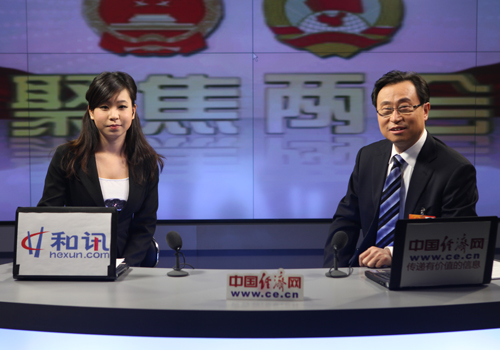 全國人大代表、山東禹王實業(yè)有限公司董事長兼總裁劉錫潛(右)做客中國經(jīng)濟(jì)網(wǎng)(王耀峰 攝)
