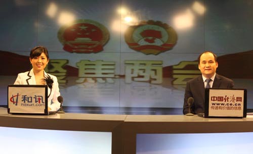 全國(guó)人大代表、安徽新亞特電纜集團(tuán)有限公司董事長(zhǎng)徐頂峰做客“中經(jīng)在線訪談” 攝影/高斌