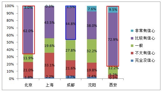 解讀三:未來(lái),西安、北京對(duì)食品安全的改善最有信心,上海、成都信心不足。