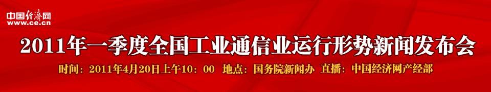 國新辦定于2011年4月20日(星期三)上午10時在國務(wù)院新聞辦新聞發(fā)布廳舉行新聞發(fā)布會,請工業(yè)和信息化部黨組成員、總工程師朱宏任介紹2011年一季度全國工業(yè)通信業(yè)運行形勢,解讀當(dāng)前工業(yè)、通信業(yè)領(lǐng)域熱點難點問題,并答記者問。中國經(jīng)濟網(wǎng)直播,敬請關(guān)注!