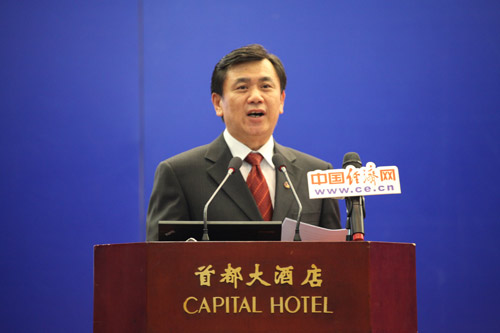 由中國(guó)道路交通安全協(xié)會(huì)、中國(guó)汽車技術(shù)研究中心和中國(guó)經(jīng)濟(jì)網(wǎng)共同主辦的“2013中國(guó)道路交通安全論壇”于8月29日在北京首都大酒店舉行。圖為交通運(yùn)輸部副部長(zhǎng)馮正霖致辭。中國(guó)經(jīng)濟(jì)網(wǎng) 裴小閣 攝影