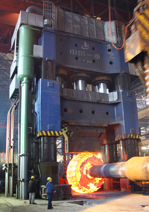 在火電、水電等一些大型鑄鍛件制造方面,經(jīng)過不懈努力,中國一重已經(jīng)成為國內(nèi)生產(chǎn)300~1000MW火電機(jī)組大型鍛件能力最強(qiáng)的企業(yè),并具備制造700MW水力發(fā)電站機(jī)組葉片、上冠、下環(huán)、水輪機(jī)大軸等鑄鍛件的能力。