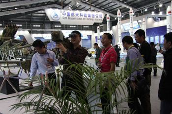 正在舉行的2010年珠海航展上,中國航天科技集團(tuán)公司共設(shè)了三個(gè)展區(qū),即宇航展區(qū)、防務(wù)展區(qū)和航天技術(shù)應(yīng)用展區(qū)。