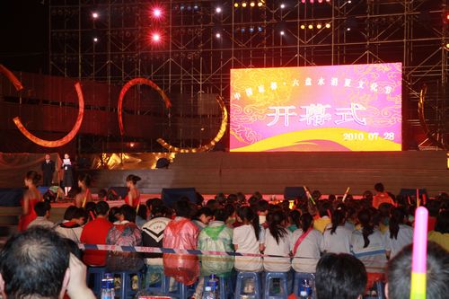 7月28日晚上19時(shí)30分,2010中國(guó)“涼都”六盤(pán)水消夏文化節(jié)在貴州省六盤(pán)水市拉開(kāi)了帷幕,整個(gè)“涼都”六盤(pán)水變成了人的海洋、歡樂(lè)的海洋。